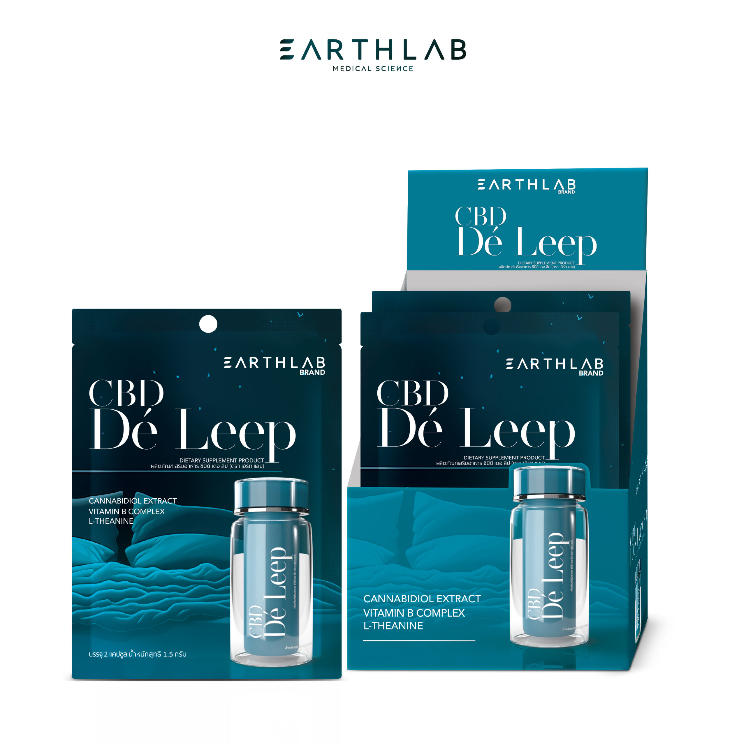 EARTHLAB DE’LEEP: A dietary supplement designed to naturally enhance sleep quality. Formulated with CBD, Gamma-Aminobutyric Acid (GABA), and Vitamin B Complex, it helps reduce stress, alleviate anxiety, and support the nervous system for better, restful sleep.